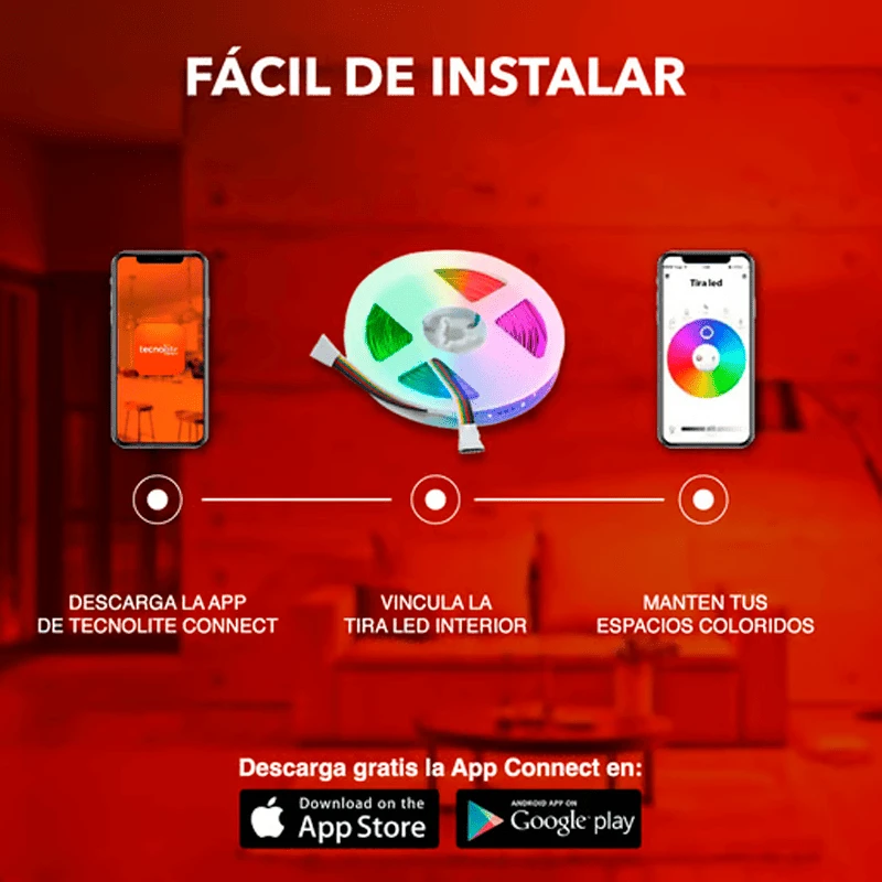 La Tira LED Outdoor Smart Strip RGB de 5 metros ofrece iluminación inteligente versátil para interiores y exteriores, ideal para ambientar tu hogar, negocio o transmisiones en vivo. Disfruta de control total de intensidad, atenuación, 64 mil tonos de blancos y 16 millones de colores desde la app Tecnolite Connect, smartwatch o comandos de voz con Alexa, Google Assistant y Atajos de Siri. Su diseño resistente IP65 permite exposición al polvo y chorros de agua, mientras que su sensor de audio integrado crea efectos de luz según el sonido ambiental. Interconecta hasta 2 tiras para un total de 10 metros y personaliza tu iluminación de manera creativa y segura.
