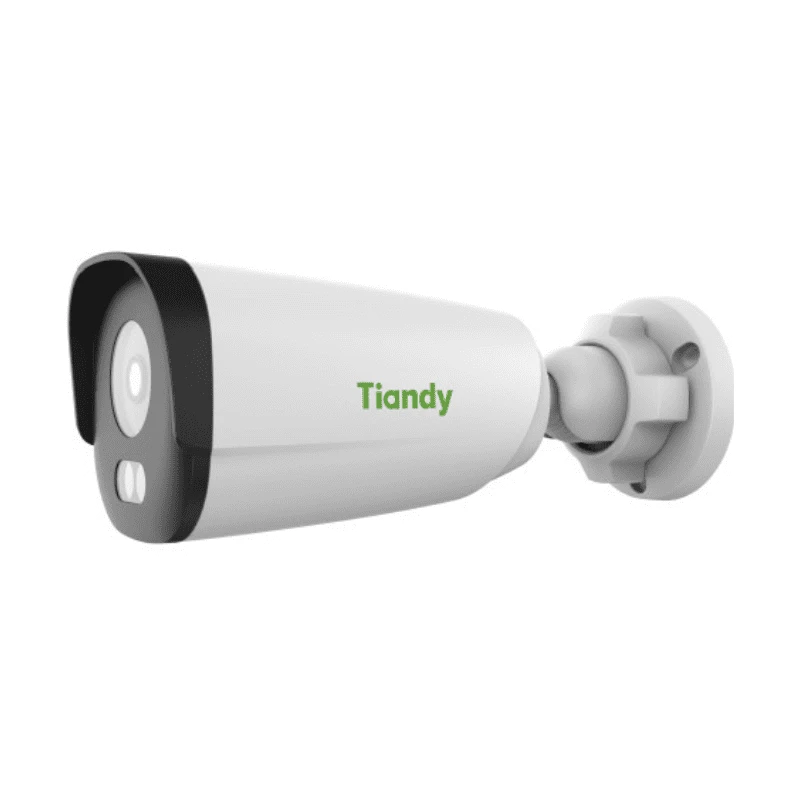 La cámara bala TC-C32GS ofrece 2MP de resolución con lente fija de 2.8 mm, visión nocturna infrarroja de hasta 50 m, micrófono integrado y construcción resistente en metal y policarbonato con protección IP67. Incluye funciones de detección de movimiento, alarma de mascarilla, grabación y captura por activación, notificación a centro de vigilancia y análisis de perímetro. Soporta almacenamiento local mediante microSD de hasta 512 GB y conexión remota con Easy7 VMS o EasyLive Plus.