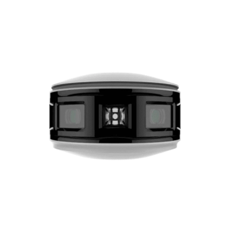 La cámara 180° de 8MP con lente fijo de 2,8 mm ofrece visión panorámica, iluminación blanca de hasta 15 m, micrófono y altavoz integrados, así como análisis de video inteligente con clasificación de personas y vehículos. Con soporte PoE, almacenamiento local de hasta 512 GB y resistencia IP67, garantiza seguridad confiable para interiores y exteriores.