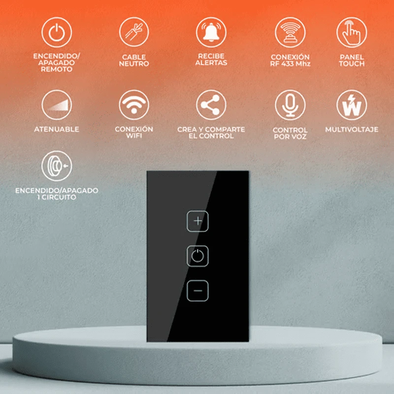 El Atenuador Táctil 1 Circuito en color negro es la mejor opción para quienes buscan comodidad, estilo y control total de la iluminación en sus espacios. Con su diseño moderno, conectividad Wi-Fi y compatibilidad con Alexa, Google Assistant y Siri, podrás crear ambientes únicos desde tu smartphone o con control por voz. Disfruta de un producto versátil, seguro y eficiente para tu hogar u oficina.