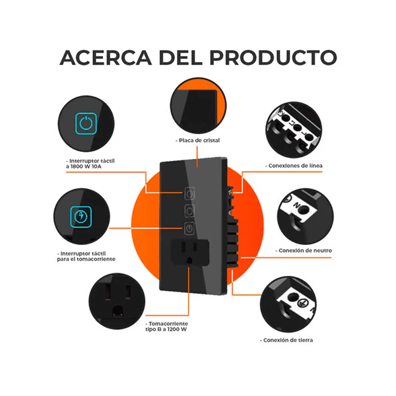 Apagador inteligente WiFi con 2 botones táctiles y 1 contacto tipo B. Controla la iluminación de tus espacios y un enchufe desde tu móvil o con asistentes de voz. Sustituye tus apagadores tradicionales y disfruta de un control moderno, sencillo y remoto.